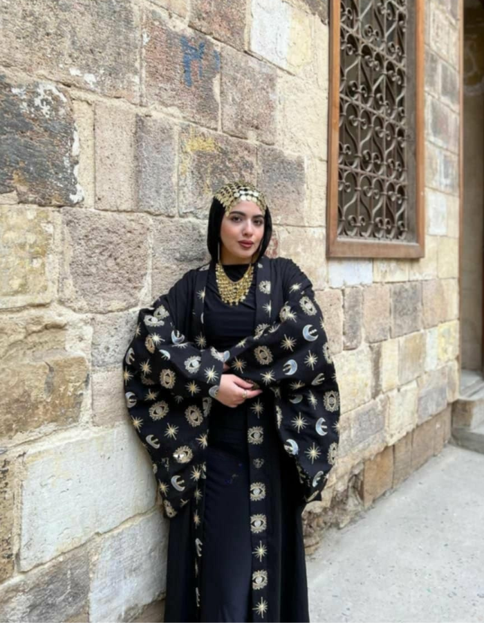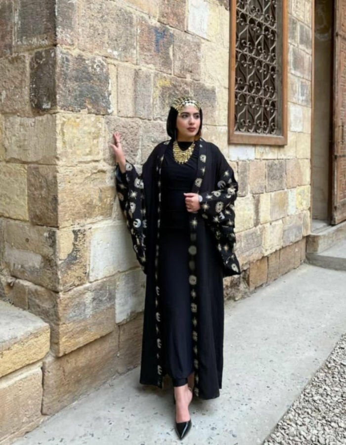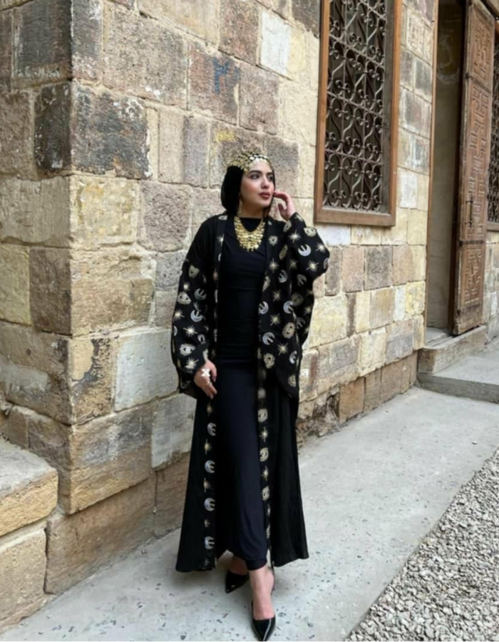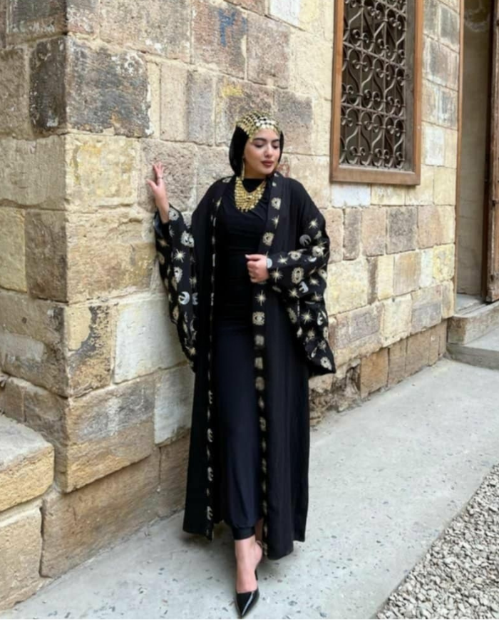 Step into elegance with the Celestial Majesty Embroidered Abaya, a mesmerizing fusion of tradition and modern luxury. Featuring intricate gold celestial embroidery on a flowing black fabric, this abaya is the perfect statement piece for formal gatherings, evening events, and special occasions.