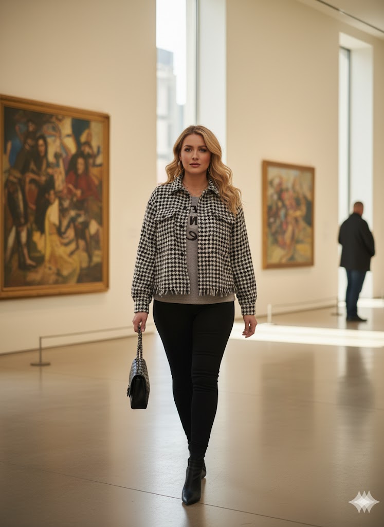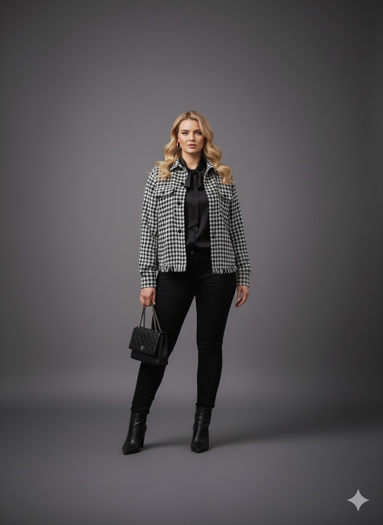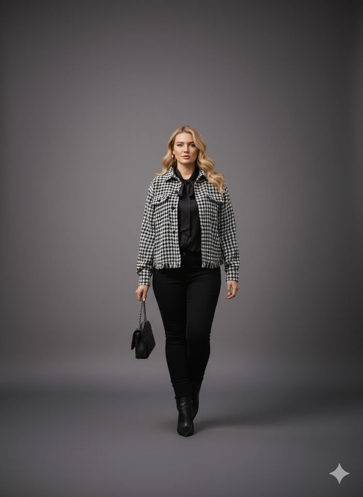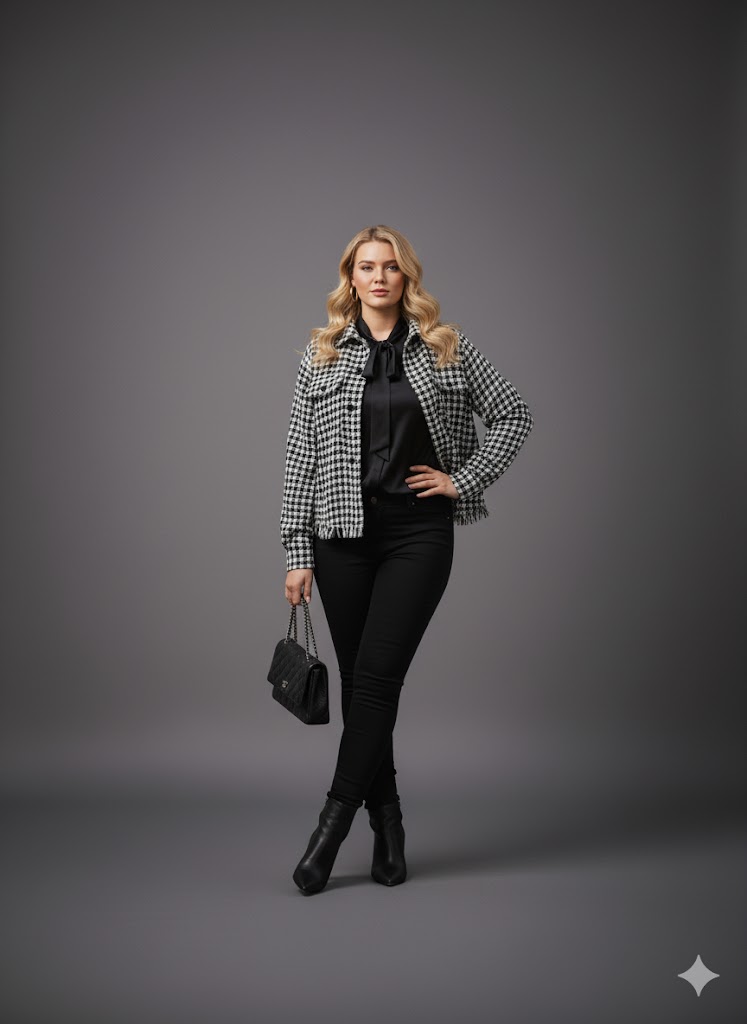Timeless Pattern: The classic houndstooth print adds instant sophistication to any outfit.