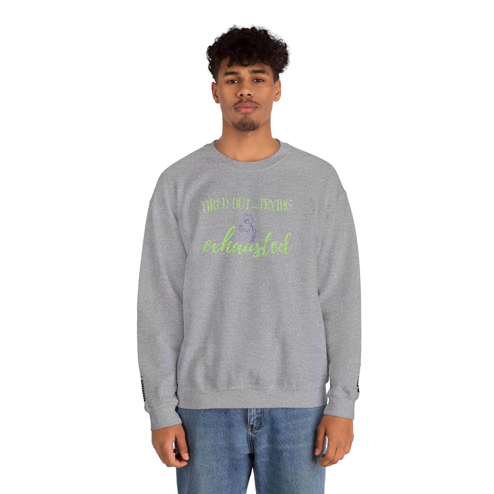 Crewneck Sweatshirt — “Treat Me I’m Exhausted” Floral Script