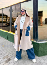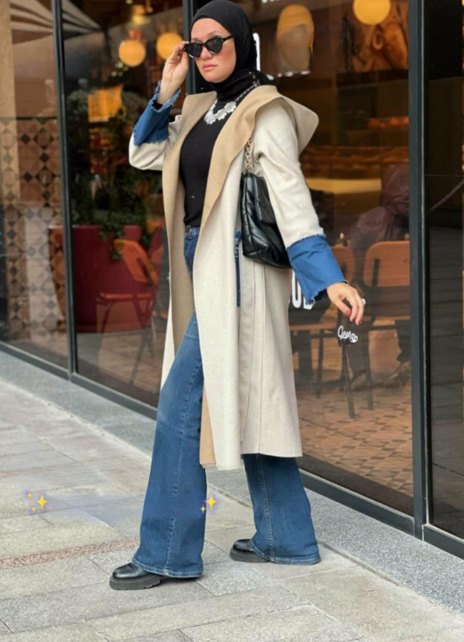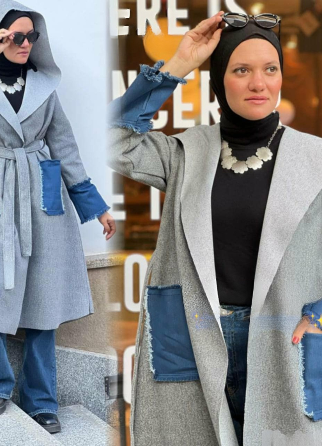 Made from a high-quality blend of wool and denim, this coat is perfect for transitional seasons, offering both warmth and breathability.