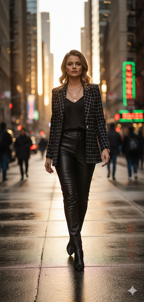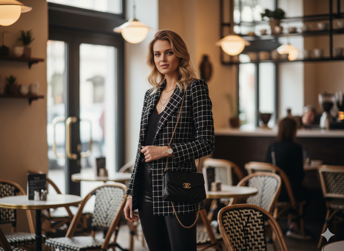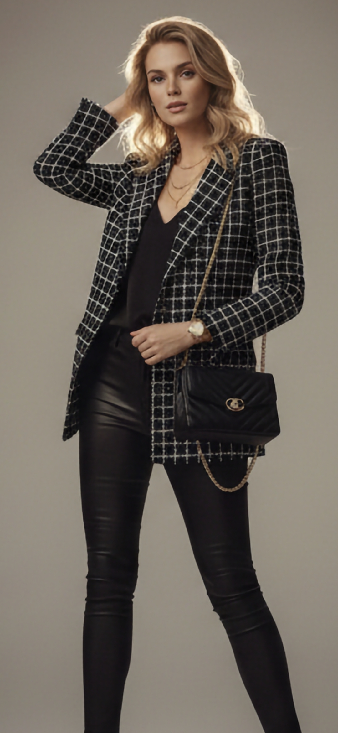 Discover effortless sophistication with our Women’s Classic Checkered Tweed Blazer, designed for everyday elegance and comfort. This black-and-white tweed jacket features a stylish check pattern, soft fabric, and a perfectly tailored silhouette that flatters all body types. Ideal for office wear, travel, dinners, or casual outings.