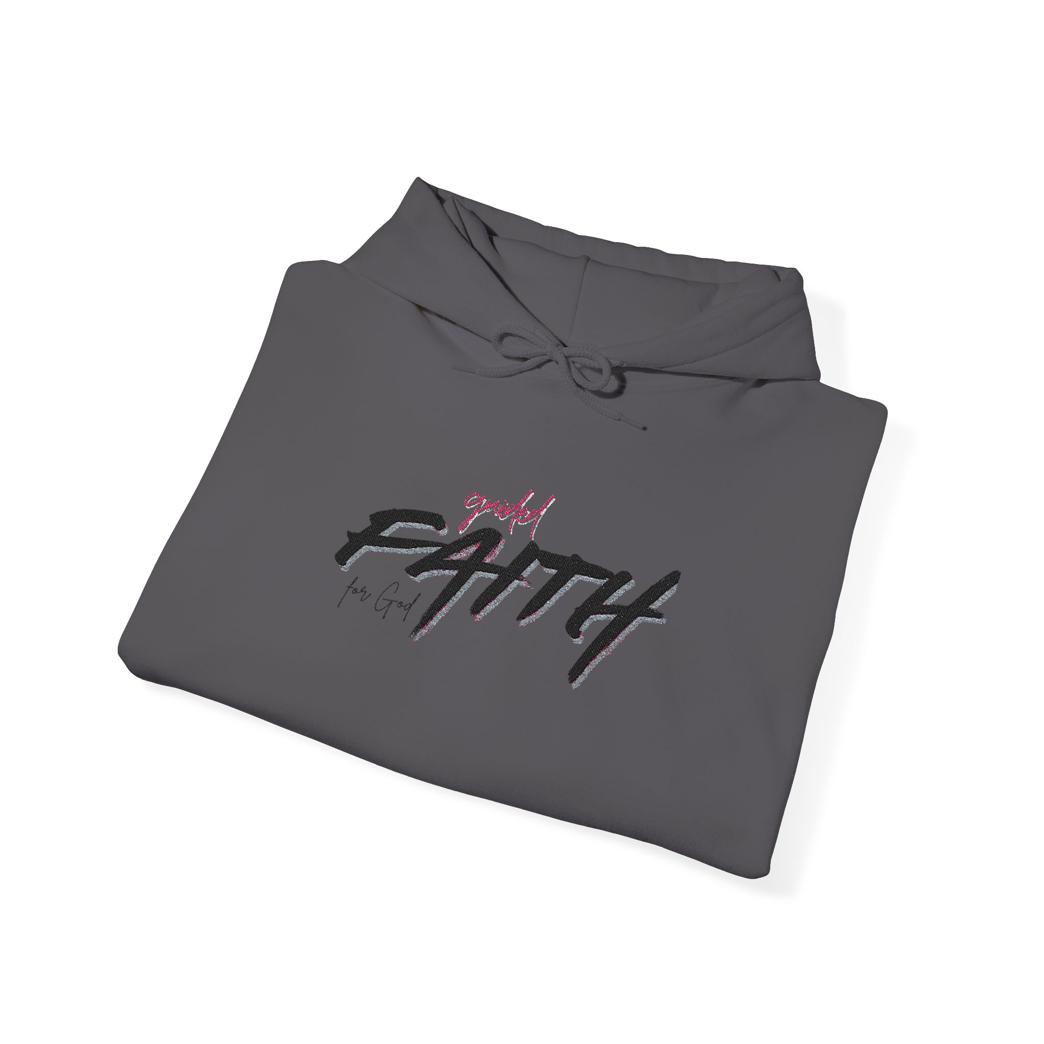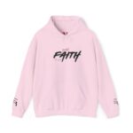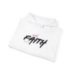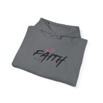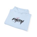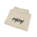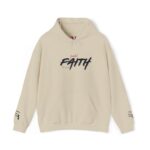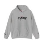 This cozy hooded sweatshirt brings a quiet, confident energy to everyday layering. Soft, medium-weight fleece holds a bold, hand-brushed script across the chest that reads “FAITH,” accented with a subtle, textured wash for a lived-in, artistic look. The roomy kangaroo pocket and double-lined hood make it a go-to for brisk mornings, late-night walks, or low-key meetups. It wears like a warm companion—comfortable, straightforward, and quietly expressive—so you can show a personal message without shouting. Stitching and finish give a tidy silhouette that pairs easily with jeans or joggers for days when comfort and calm matter most.