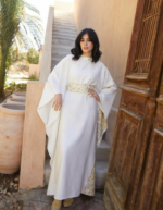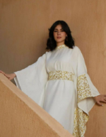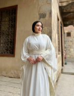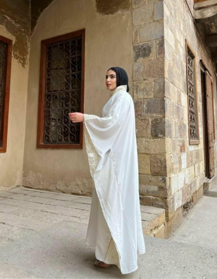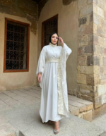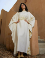 Step into regal elegance with the Imperial Elegance Embroidered Abaya, a timeless piece designed for sophistication and grace. Featuring intricate gold embroidery on a flowing ivory fabric, this abaya is perfect for formal occasions, weddings, and evening gatherings.