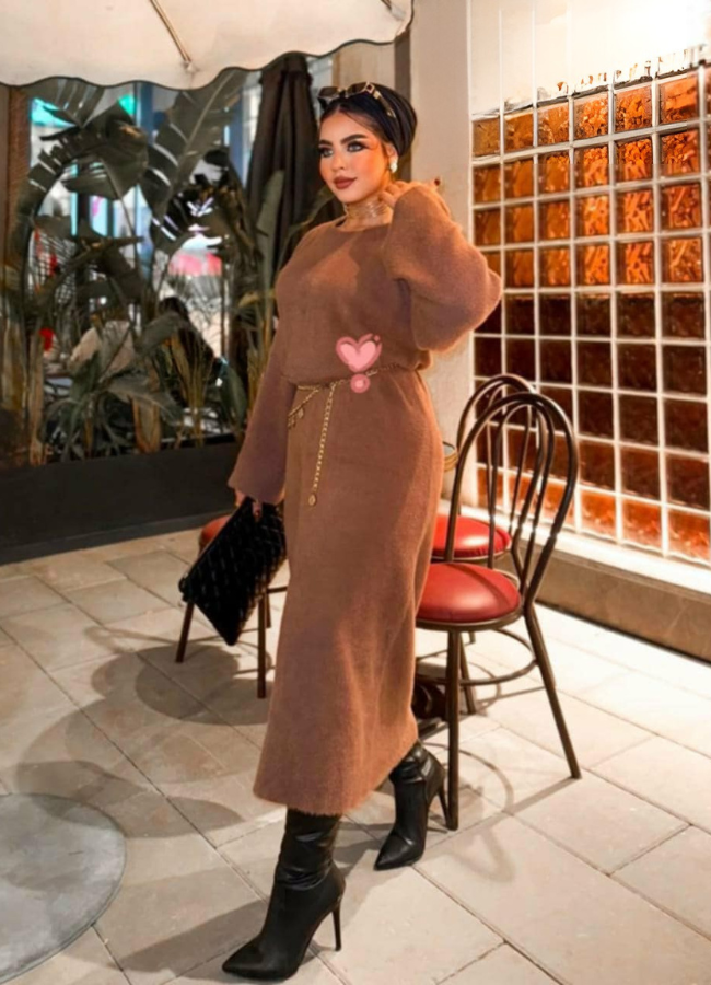 effortless elegance with our Luxe Comfort Knit Dress. Crafted from a soft, cozy knit fabric in a rich mocha hue, this dress is perfect for both casual and dressy occasions. Featuring wide sleeves for a touch of sophistication and a relaxed yet flattering fit, it offers the perfect blend of comfort and style. Dress it up with a statement belt and accessories or keep it minimal for a chic, cozy look.