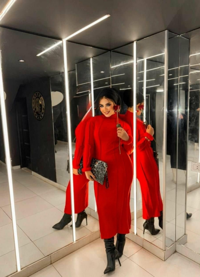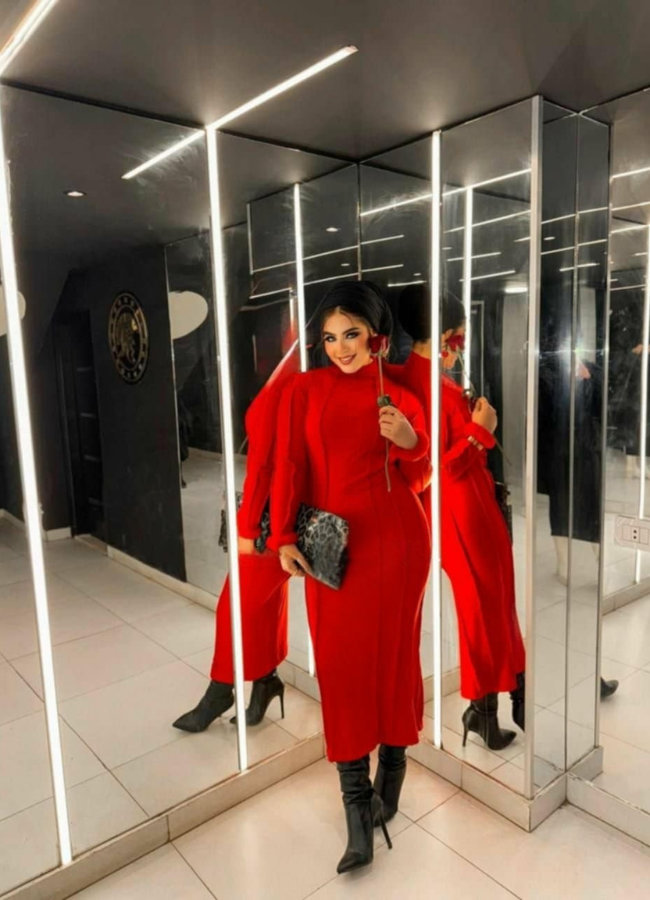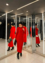 Make a bold statement with the Scarlet Elegance Knit Dress. Featuring a rich scarlet hue, high neckline, and body-contouring fit, this dress combines warmth and sophistication. Perfect for evening events or chic everyday wear, it pairs effortlessly with heels or boots for a stunning look.