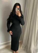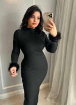 Crafted from a premium knit blend, the Scarlet Elegance Knit Dress is designed to keep you stylish and comfortable in any season.