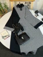 Elevate your wardrobe with the timeless sophistication of the Houndstooth Elegance Maxi Dress. This dress combines classic patterns with a contemporary design, making it perfect for a variety of occasions.
