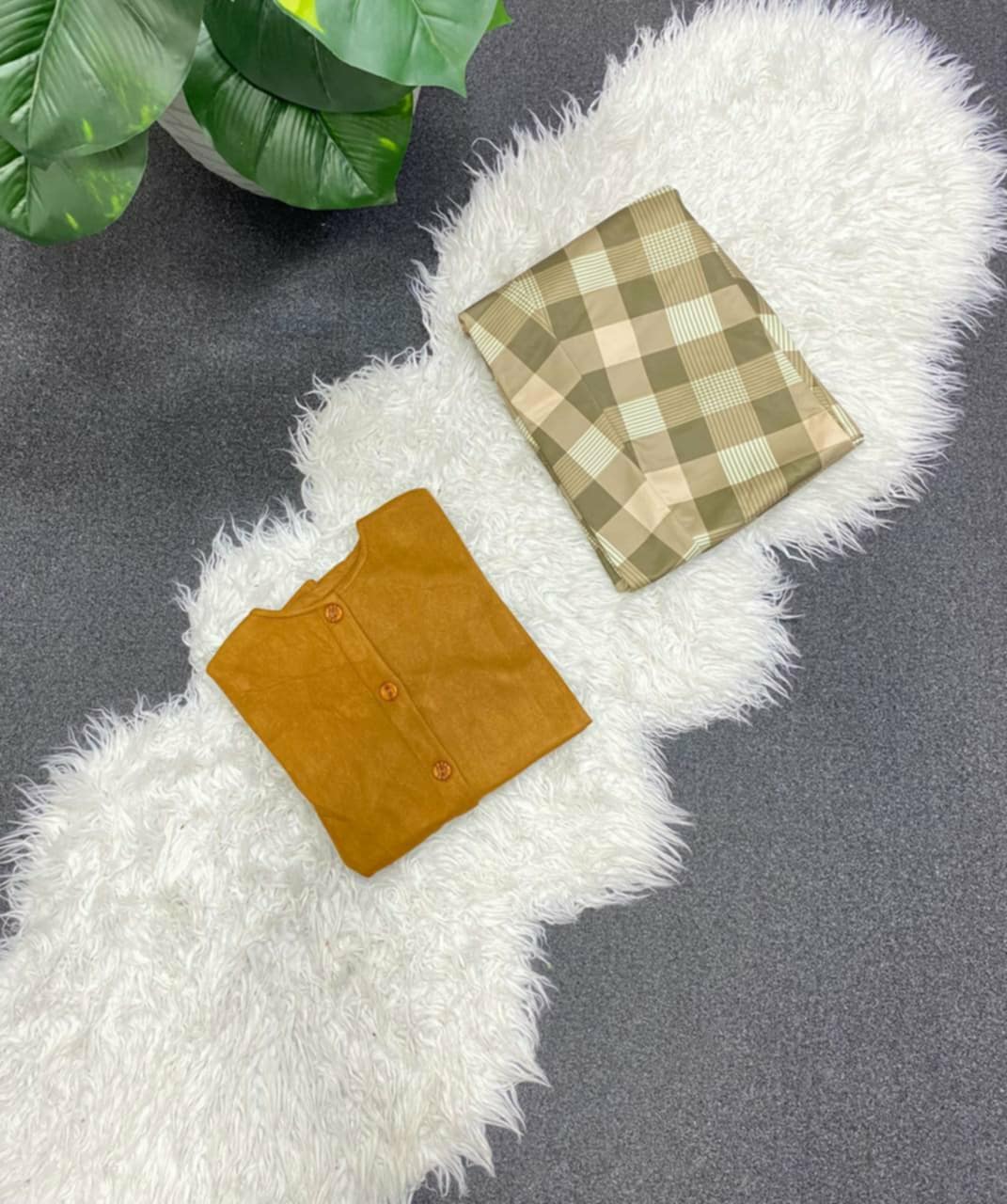 Be the first to review “Vintage Chic Plaid Skirt & Cropped suede Jacket Set”